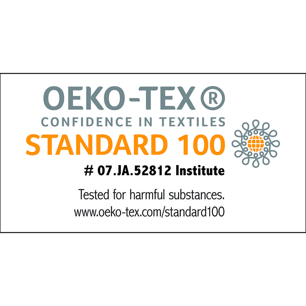 Oeko-Tex Certified, includes no harmful substances or chemicals (# 07.JA.52812)