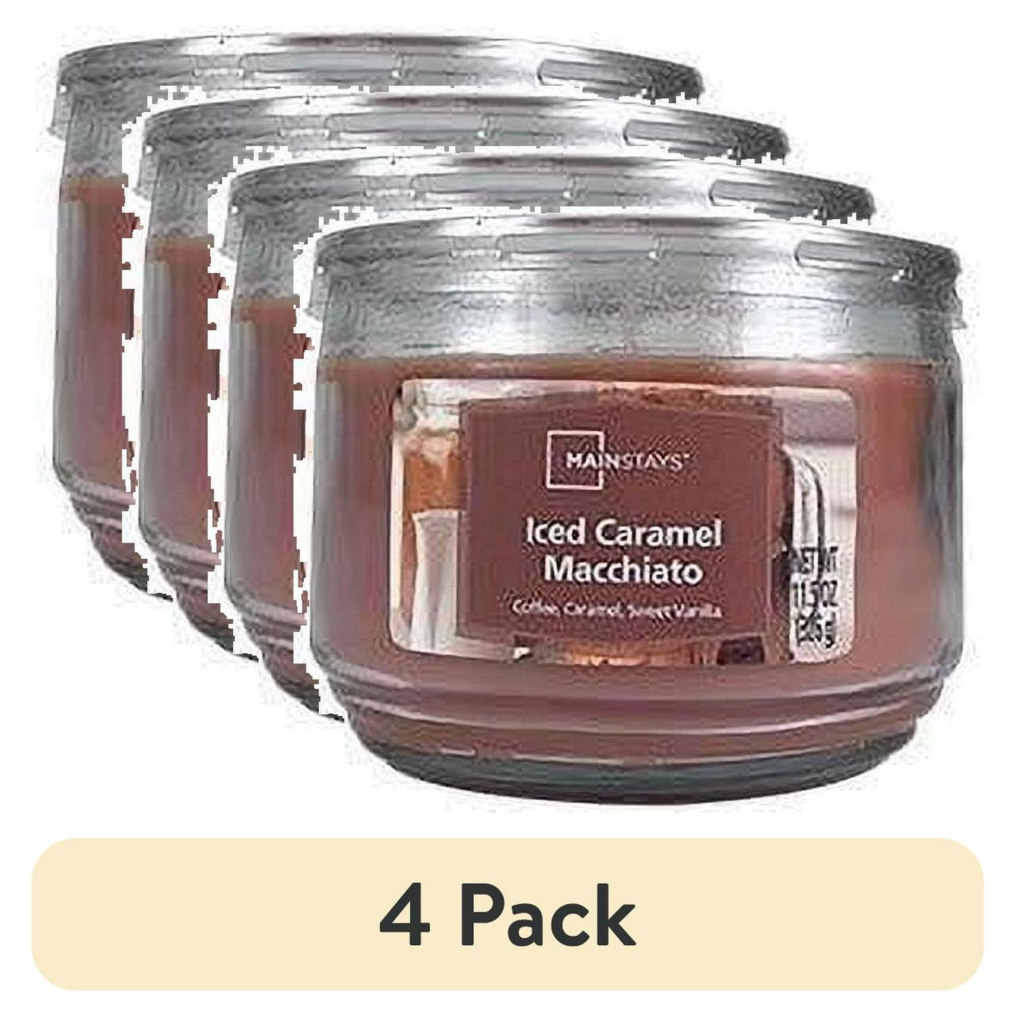 (4 pack) Iced Caramel Macchiato Scented 3-Wick Glass Jar Candle, 11.5oz (4 pack) Iced Caramel Macchiato Scented 3-Wick Glass Jar Candle, 11.5oz (4 pack) Iced Caramel Macchiato Scented 3-Wick Glass Jar Candle, 11.5oz