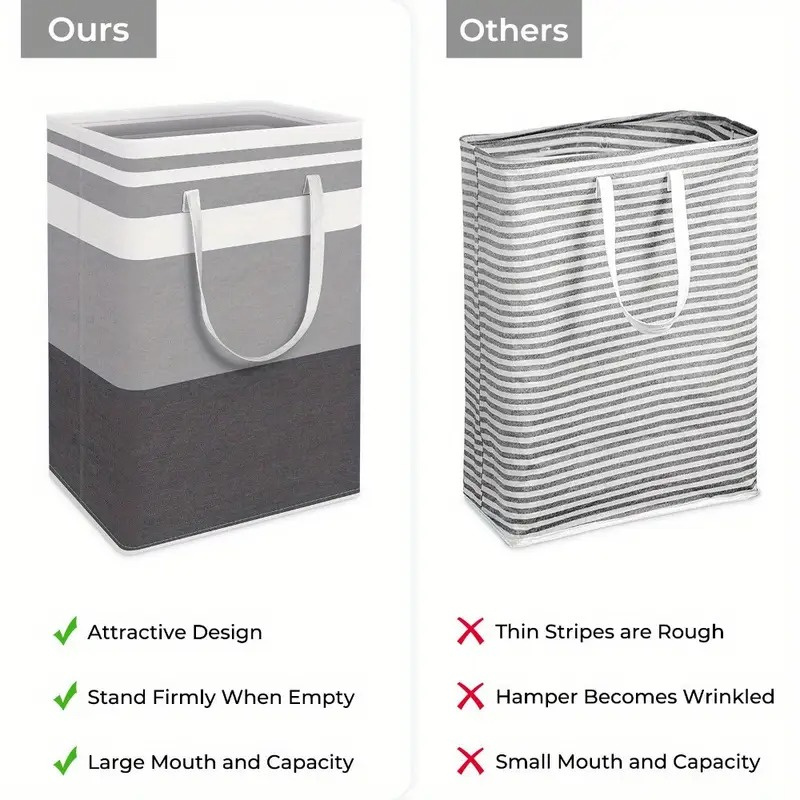 The freestanding structure ensures stability even when empty, while the foldable design allows for compact storage when not in use. Extended reinforced handles make it easy to lift and carry, ideal for dorms, apartments, bedrooms, or family laundry rooms.
