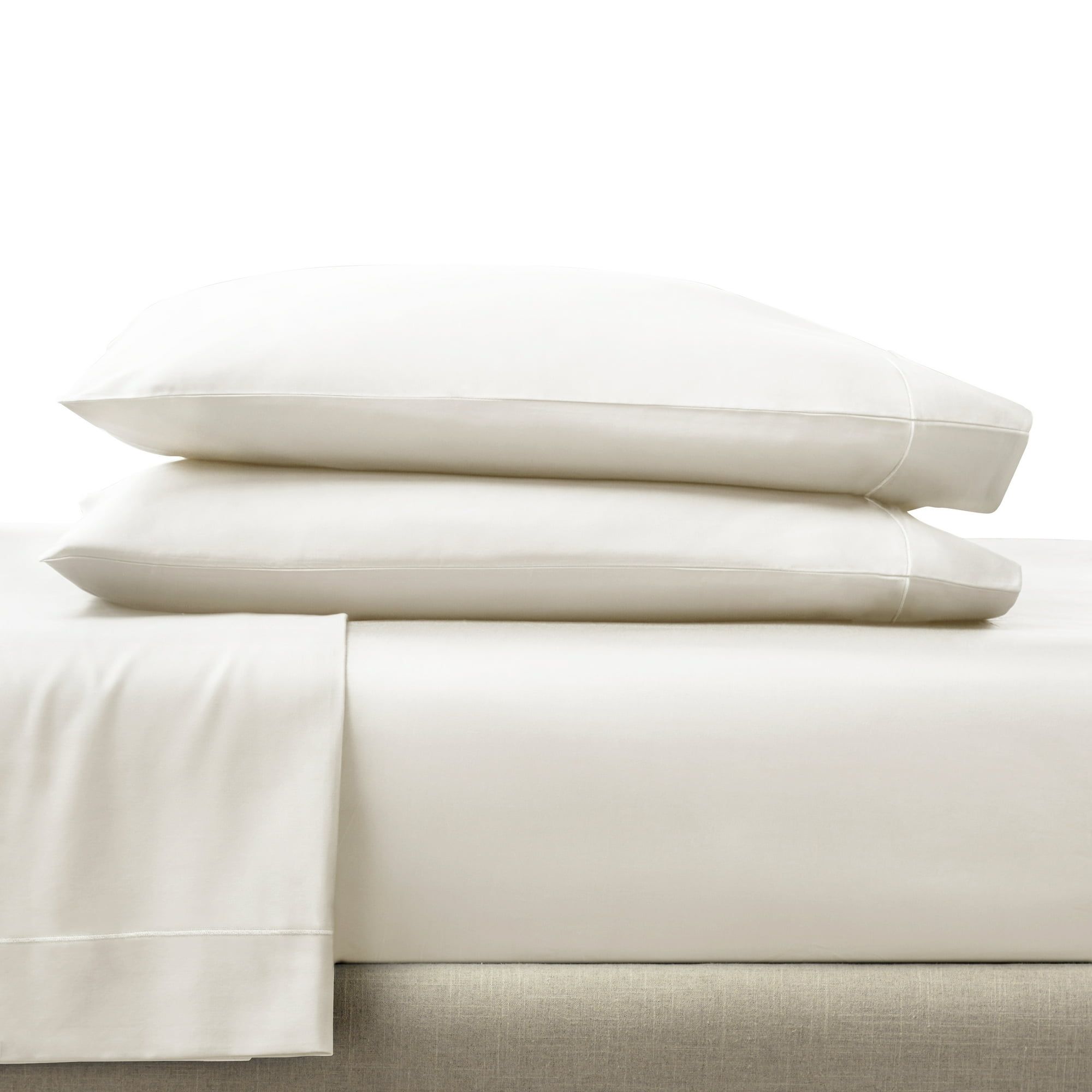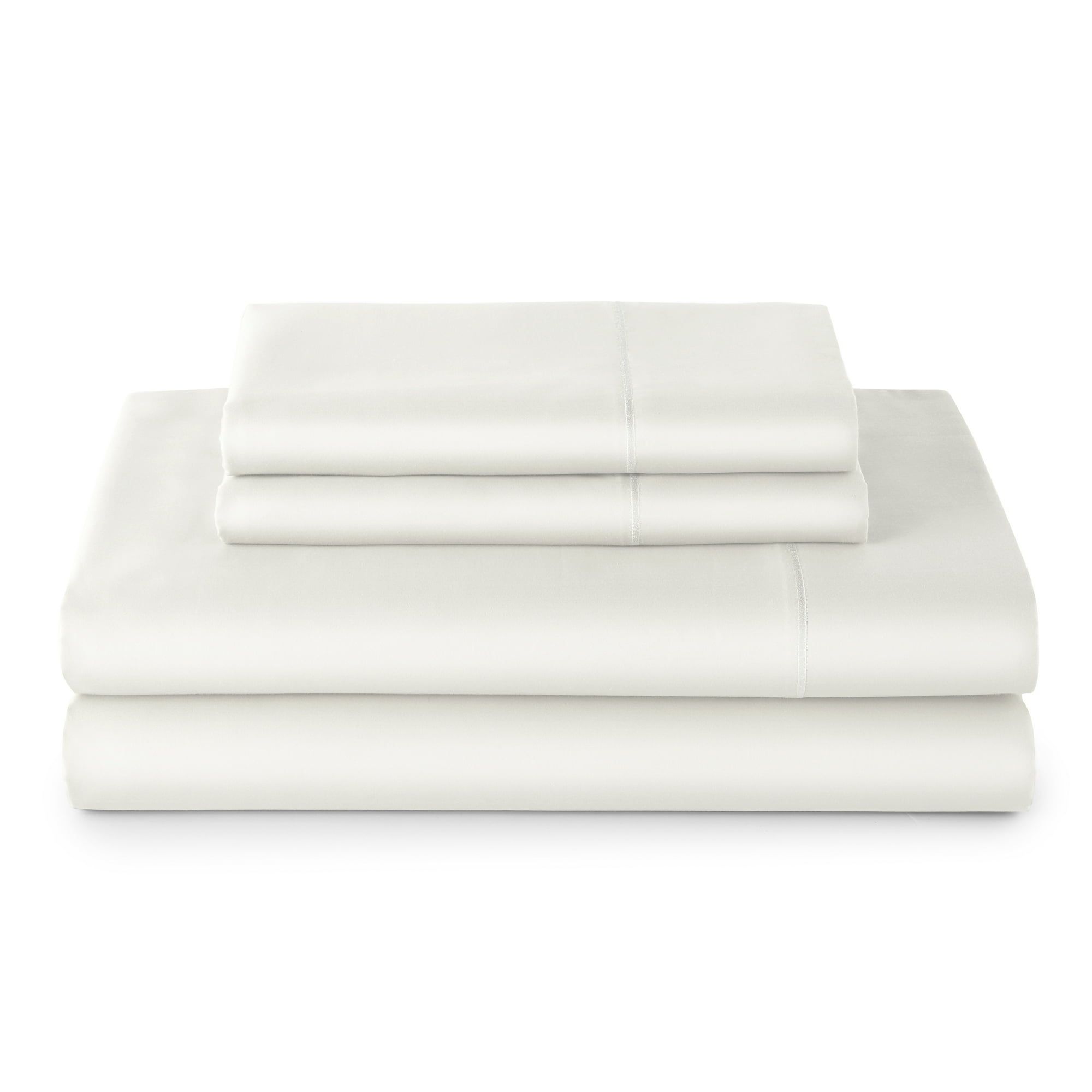 Complete Set: Includes one deep-fitted sheet, one flat sheet, and two pillowcases for a coordinated bedding solution.Secure Fit: Features Flexi-Fit Technology with elasticized top and end panels, accommodating mattresses from 9 to 18 inches deep.Temperature Regulation: Yarn wicks away moisture, providing comfort by keeping you cool in summer and warm in winter.Durable Fabric: Made from 100% cotton with a 400 thread count sateen weave, designed to be shrink and wrinkle-resistant.Certified Safety: OEKO-TEX Made in Green certification ensures high environmental safety standards are met.