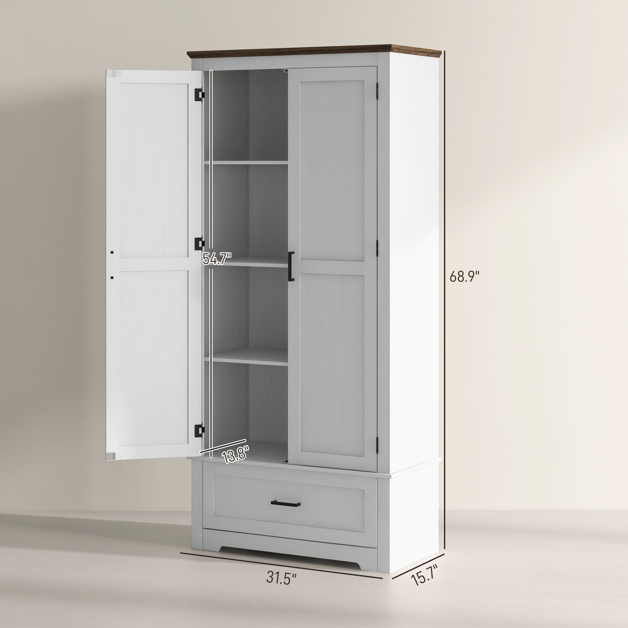 69" Floor Cabinet, Kitchen Pantry Cabinet w/ 2 Doors, Drawer & Adjustable Shelves, Freestanding Storage for Dining Room, White