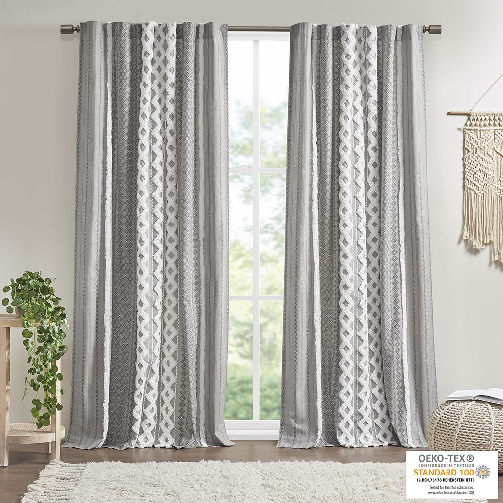 The INK+IVY Imani Cotton Printed Window Panel with Chenille Stripe and Lining offers a chic and casual update to your home. This ivory window panel features a geometric print with a tufted chenille stripe trim, for a textured artisanal look and feel. A lightweight white cotton lining on the reverse softly filters light, while providing better drapability and added privacy. In addtition, this 100% cotton curtain panel is also OEKO-TEX certified, meaning it does not contain any harmful substances or chemicals for the best in quality comfort and wellness. Each panel is finished with a rod pocket top for easy hanging, and back tabs for a more clean and tailored finish. This window panel is sold as a single and 2 window panels must be purchased to cover any standard size window. Complete the look with coordinating bedding sets and bath decor, available and sold separately.