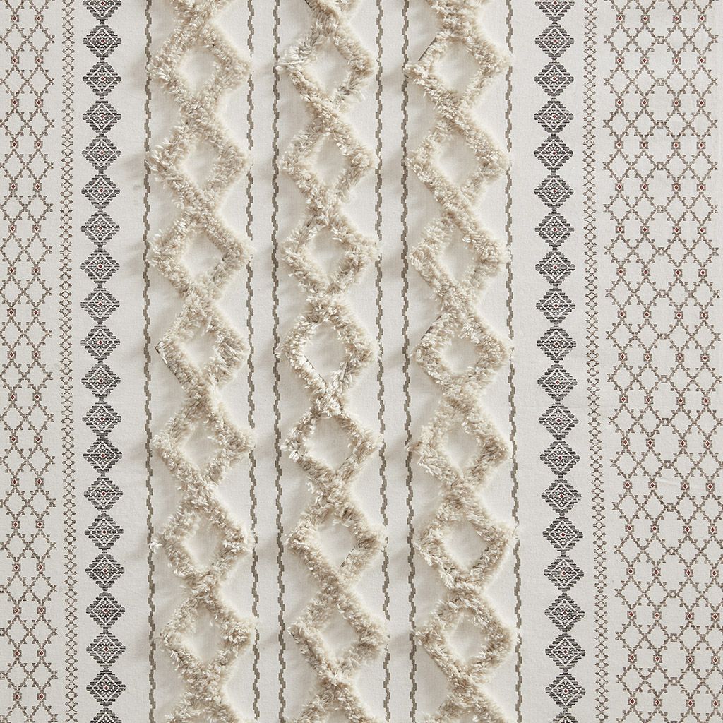 The INK+IVY Imani Cotton Printed Window Panel with Chenille Stripe and Lining offers a chic and casual update to your home. This window panel features a geometric print with a tufted chenille stripe trim, for a textured artisanal look and feel. A lightweight white cotton lining on the reverse softly filters light, while providing better drapability and added privacy. In addtition, this 100% cotton curtain panel is also OEKO-TEX certified, meaning it does not contain any harmful substances or chemicals for the best in quality comfort and wellness. Each panel is finished with a rod pocket top for easy hanging, and back tabs for a more clean and tailored finish. This window panel is sold as a single and 2 window panels must be purchased to cover any standard size window. Complete the look with coordinating bedding sets and bath decor, available and sold separately.