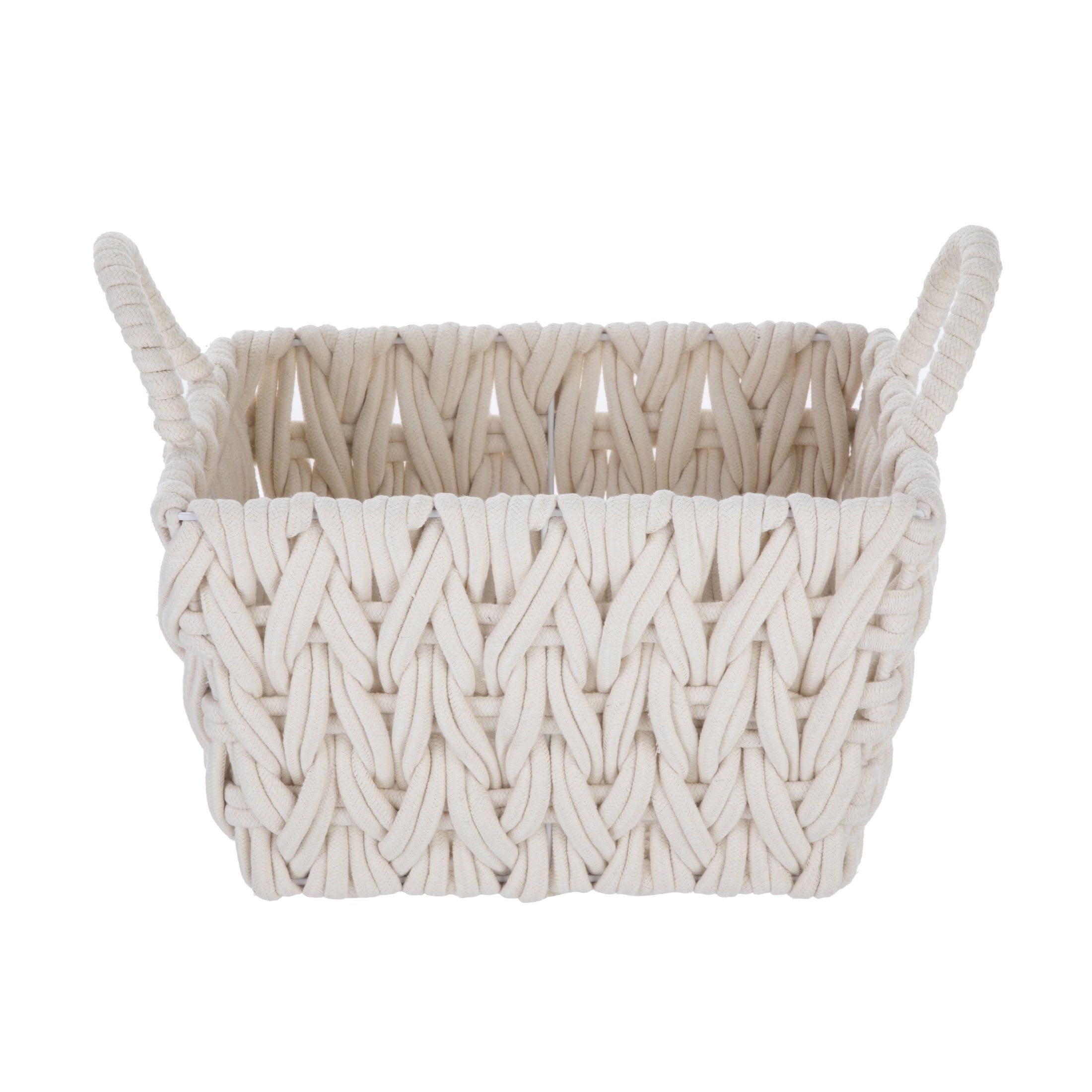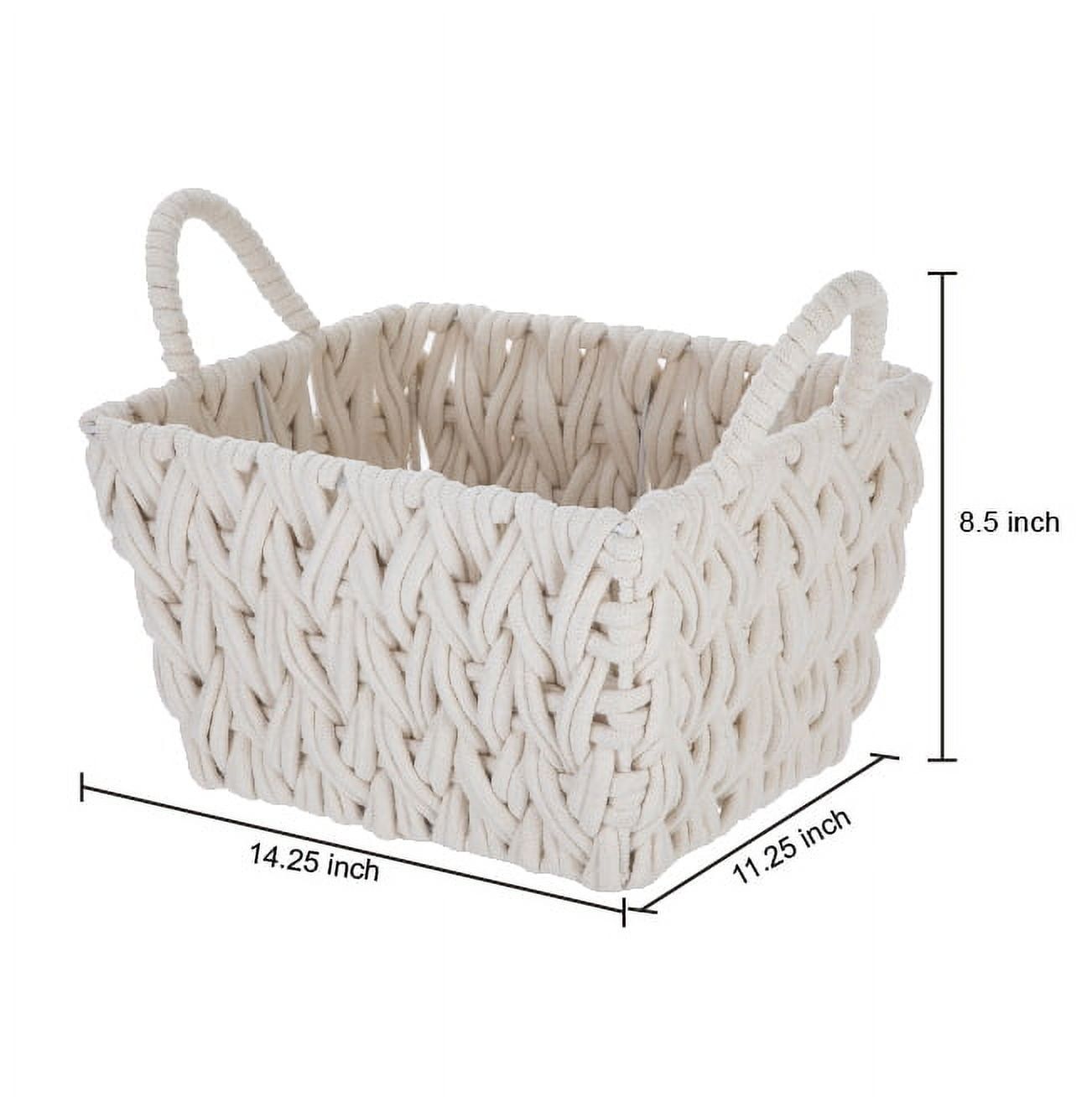 Medium White Woven Rope Decorative Storage Basket with Handles, 14.3 in x 11 in x 9 in Medium White Woven Rope Decorative Storage Basket with Handles, 14.3 in x 11 in x 9 in Medium White Woven Rope Decorative Storage Basket with Handles, 14.3 in x 11 in x 9 in