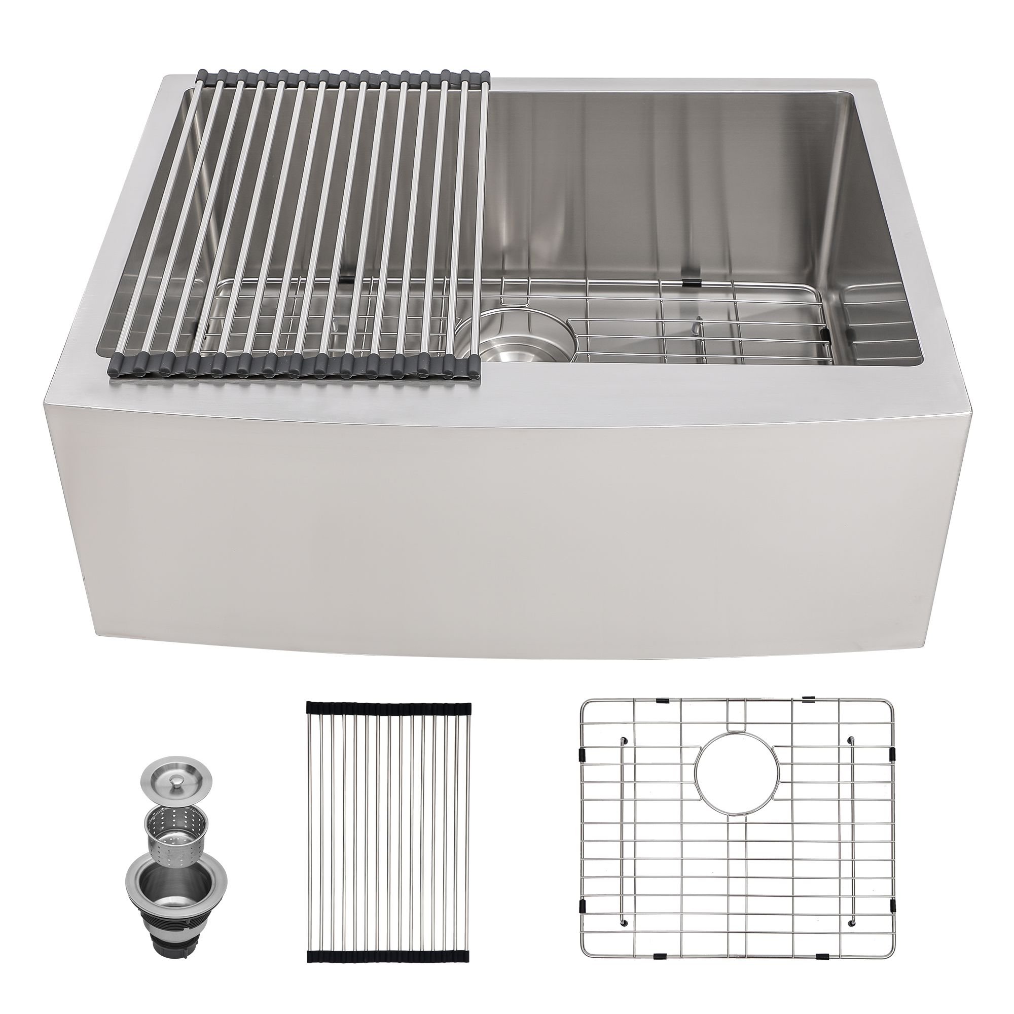 Farmhouse Apron Stainless Steel Kitchen Sink,16 Gauge Apron Front Single Bowl Kitchen Sink with Drain Kit Farmhouse Apron Stainless Steel Kitchen Sink,16 Gauge Apron Front Single Bowl Kitchen Sink with Drain Kit Farmhouse Apron Stainless Steel Kitchen Sink,16 Gauge Apron Front Single Bowl Kitchen Sink with Drain Kit