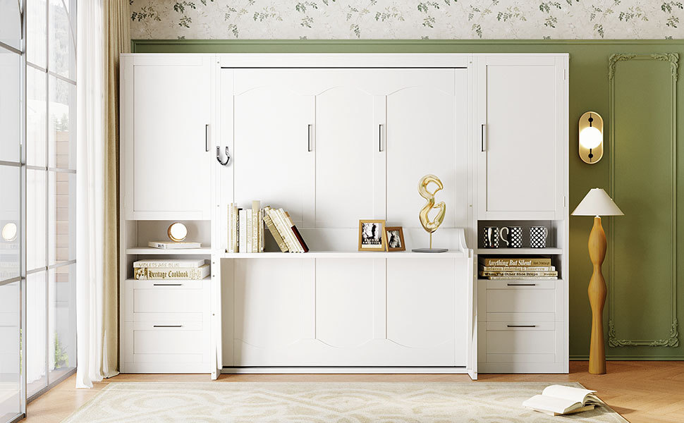 [Space-saving Design] Transform any room into a multifunctional space with our Murphy Bed. When not in use, simply fold it up to create more floor space for activities. Utilize the under-bed storage shelf to stow away bedding, pillows, or seasonal items, keeping your space tidy and clutter-free.
