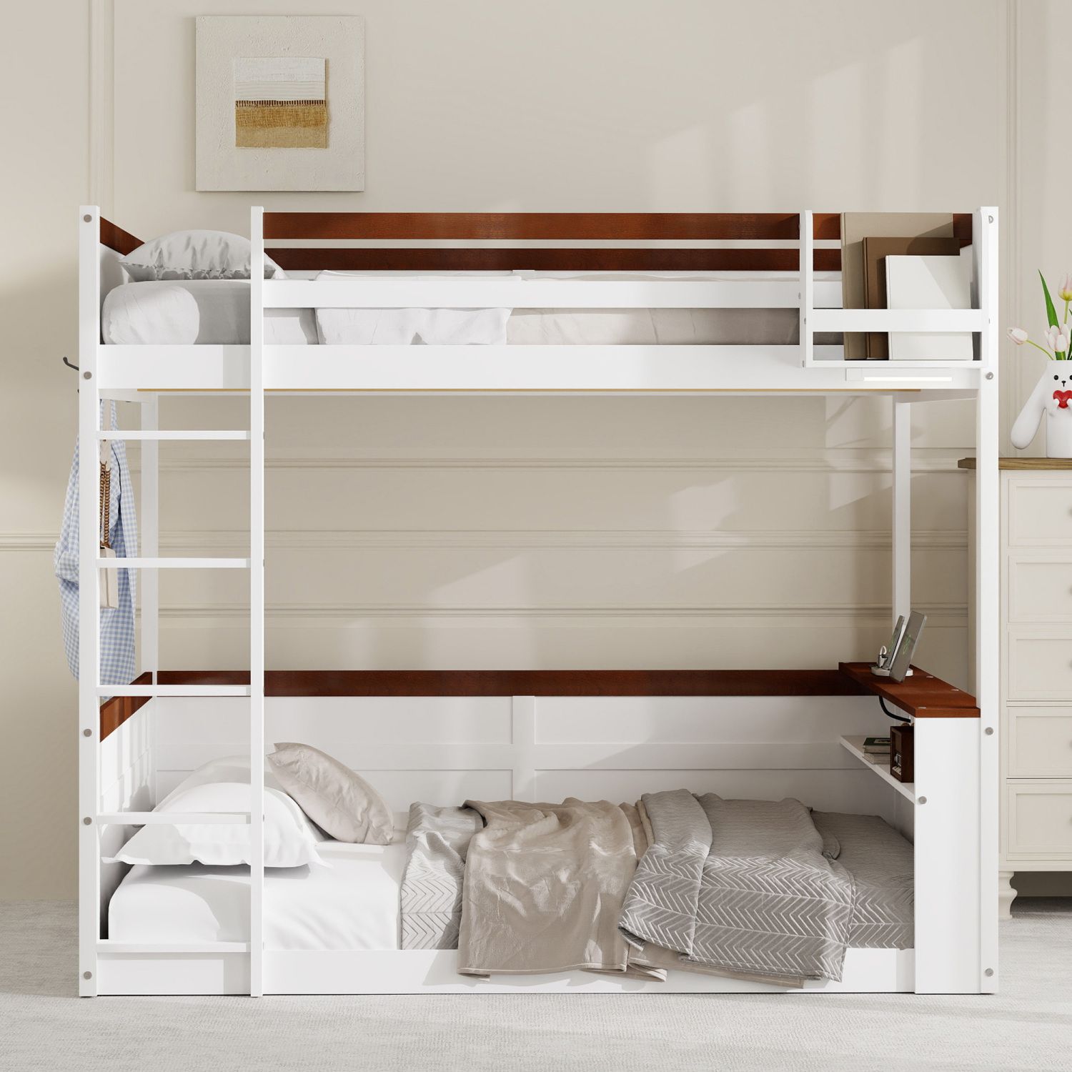 [Queen Bunk Bed with Built-in Shelves & Storage] This space-saving bunk bed combines workstation with multiple storage solutions - featuring 2 small shelves underneath the elevated bed, plus an additional storage box at the upper bed, creating the perfect study/play area while keeping essentials organized and within reach.